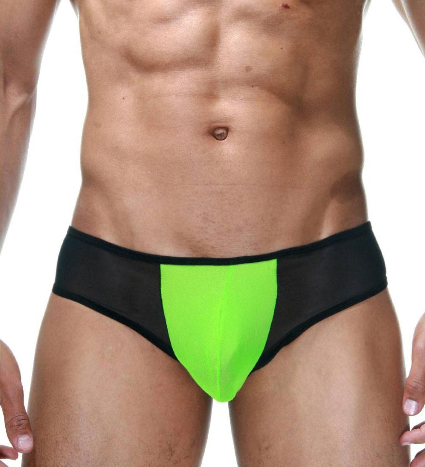 Черные трусы-бразилиана с лаймовой вставкой.