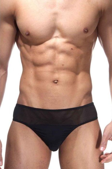 Тонги для мужчин с низкой посадкой, из эластичной полупрозрачной черной ткани.