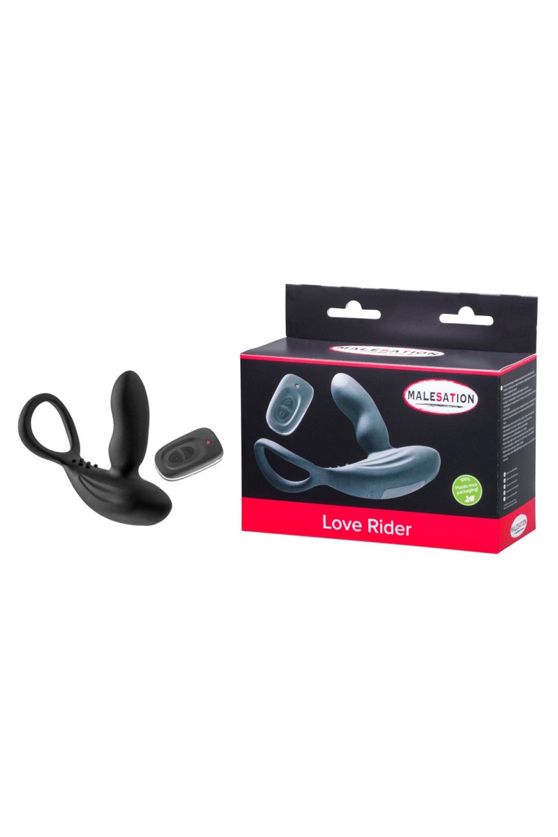 Стимулятор простаты с эрекционным кольцом Love Rider MALESATION – это мощное устройство для мужской стимуляции, созданное для глубокого удовольствия и максимального комфорта. Его эргономичный и креативный дизайн обеспечивает точную стимуляцию простаты и промежности, а дополнительное рельефное покрытие с мягкими шипами усиливает ощущения. Кольцо плотно охватывает мошонку (или мошонку и пенис вместе), что усиливает эффект и дарит длительные, интенсивные оргазмы. Втулка, анатомически изогнутая для точного попадания в зону простаты, делает процесс использования невероятно комфортным и эффективным. Устройство оснащено двумя мощными моторами, которые можно использовать как одновременно, так и по отдельности, регулируя их работу с помощью удобного пульта дистанционного управления. Вам доступны 11 функций вибрации для стимуляции простаты и промежности, что позволяет экспериментировать с различными режимами и находить идеальное сочетание для максимального удовольствия. Радиус действия пульта – до 5 метров, что открывает множество вариантов как для соло-игр, так и для игр с партнером. Love Rider MALESATION изготовлен из мягкого, безопасного силикона и АБС-пластика, что делает его приятным на ощупь и полностью гипоаллергенным. Водонепроницаемость позволяет использовать его не только в спальне, но и в душе. Устройство легко чистится, что обеспечивает гигиену и долговечность. Для работы стимулятора предусмотрен перезаряжаемый литиевый аккумулятор, который заряжается через USB-кабель. Полная зарядка занимает 3-4 часа и обеспечивает до 150 минут работы в зависимости от режима использования. Диаметр кольца для мошонки – 4,8 см.