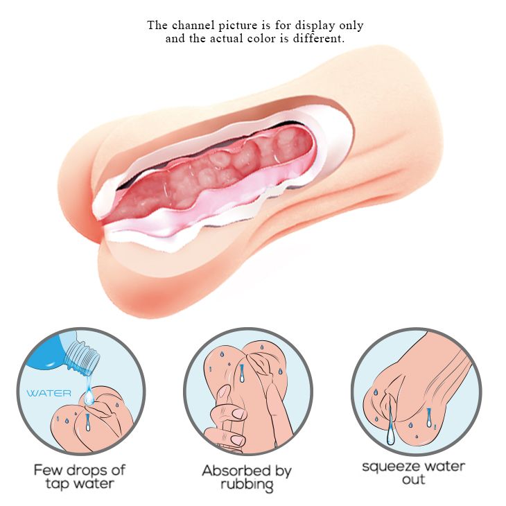 Мастурбатор с вагинальным отверстием изготовлен из особенного материала. Особенность заключается в том, что при добавлении нескольких капель воды в тоннель мастурбатора, материал принимает консистенцию скользящей, увлажняющей смазки. Имеет натуральный телесный цвет и очень правдоподобные внутренние складки, которые приносят ощущение полноценного сексуального контакта за счет плотного облегания ствола пениса.