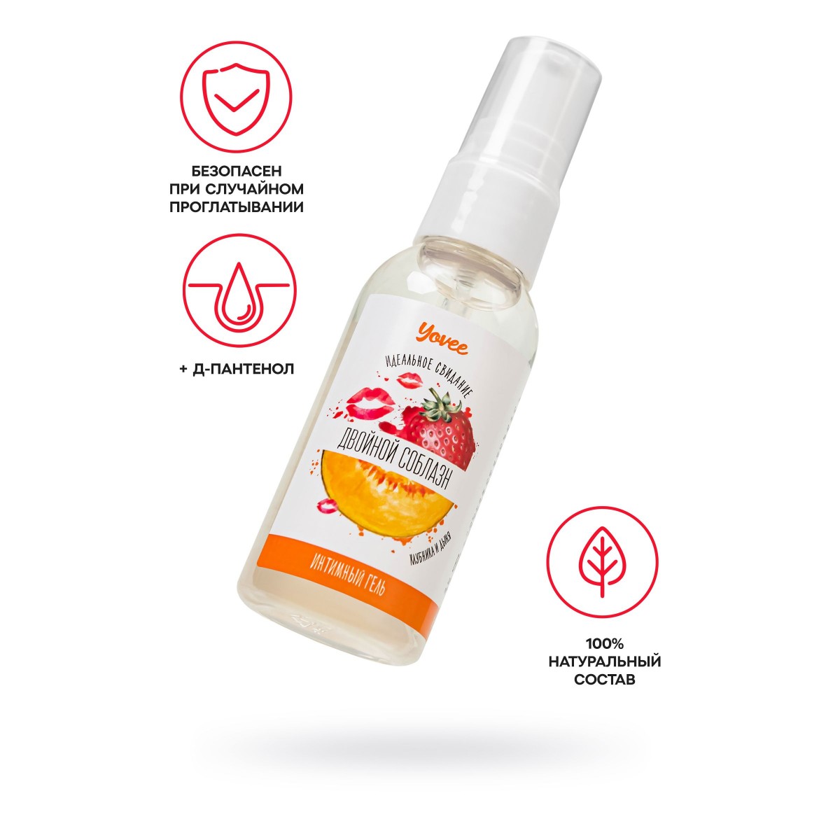Интимный гель-смазка Yovee «Двойной соблазн» подарит комфорт и безупречное скольжение. Пантенол окажет успокаивающее и смягчающее действие, ускорит процессы регенерации слизистых. Волшебное сочетание вкусов и ароматов клубники и дыни усилят удовольствие. Подходит для использования как с презервативом, так и без него. Шелковистая текстура на водной основе обеспечивает длительное скольжение без липкости и скатывания. Легко смывается водой, не оставляет следов на одежде и постельном белье. Простой и безопасный состав: безопасен при случайном проглатывании, безопасен для микрофлоры.